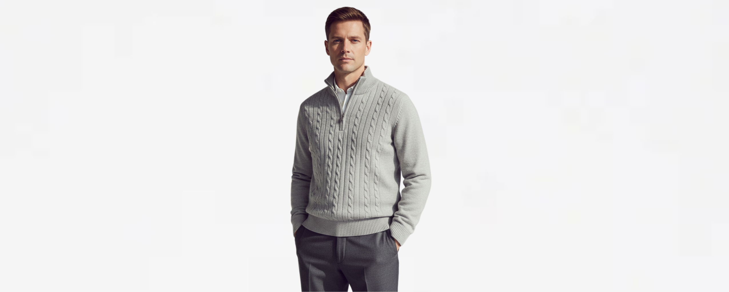 Men’s Regular Fit Cable Knit Sweater - Zip Collar in Cotton